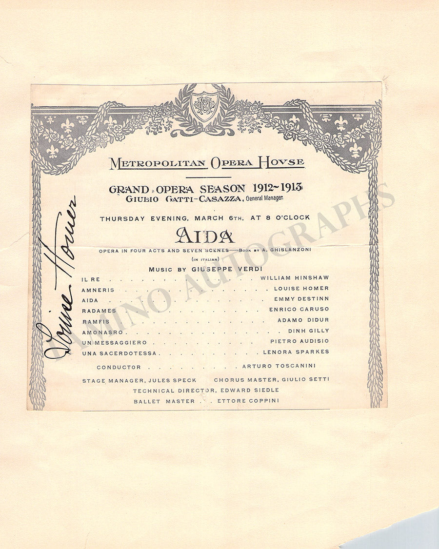 Louise Homer, Riccardo Martin Autographs Cast Page