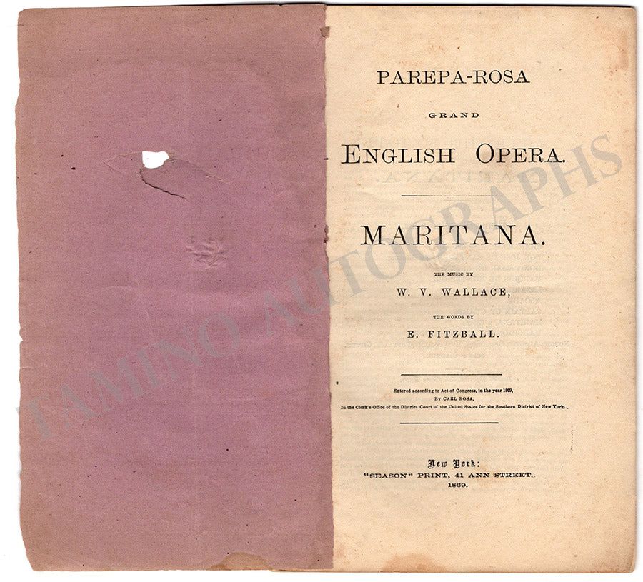 Euprosyne Parepa-Rosa Program Libretto Wallace Maritana