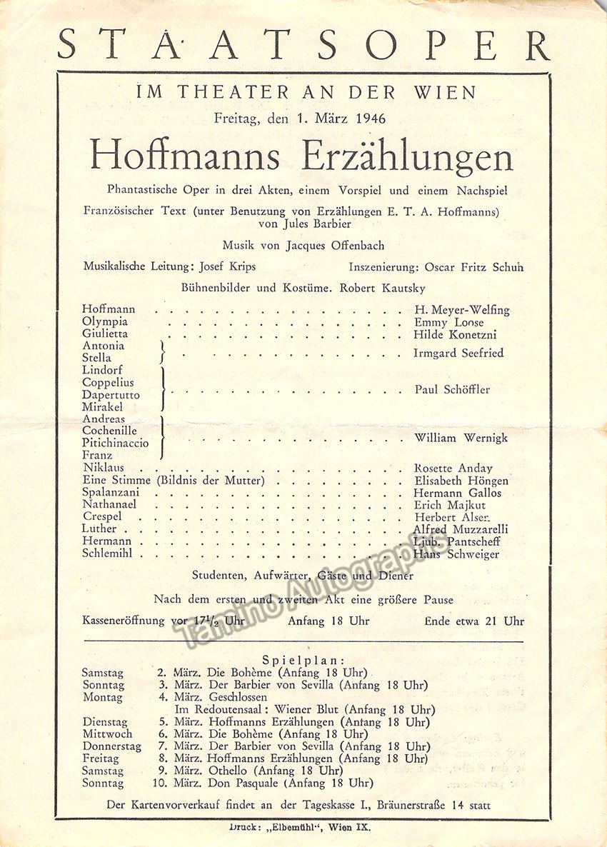 Krips, Josef - Program Lot Vienna Opera 1945-1946
