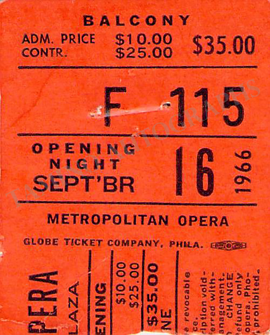 Metropolitan Opera - Set of 2 Ticket Stubs 1966 Reinauguration Metropolitan Opera - Set of 2 Ticket Stubs 1966 Reinauguration