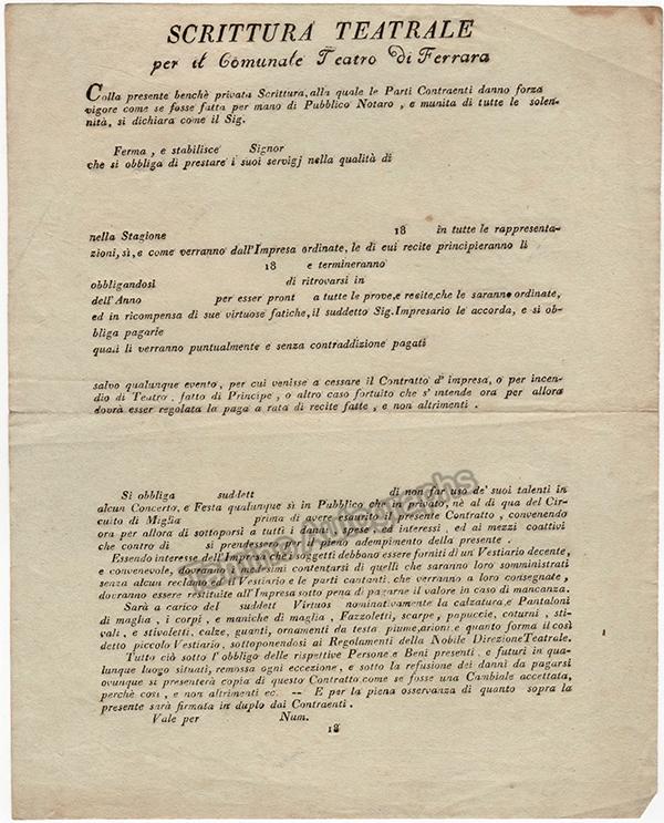 Teatro Comunale di Ferrara - Announcement Playbill and Contract 1826 - Tamino Teatro Comunale di Ferrara - Announcement Playbill and Contract 1826 - Tamino