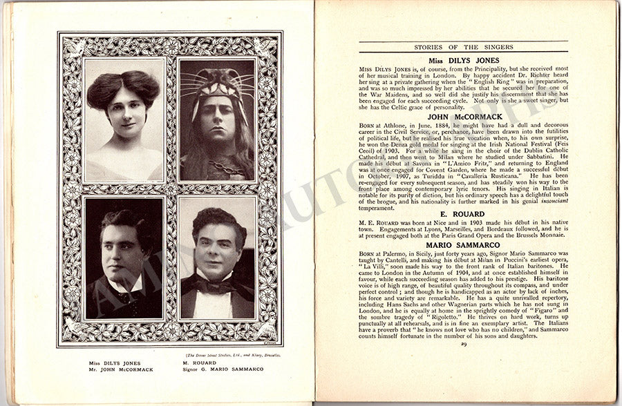 Beautiful book for The Royal Opera House 1913 Season with articles and pictures of singers and information about the operas of that season.