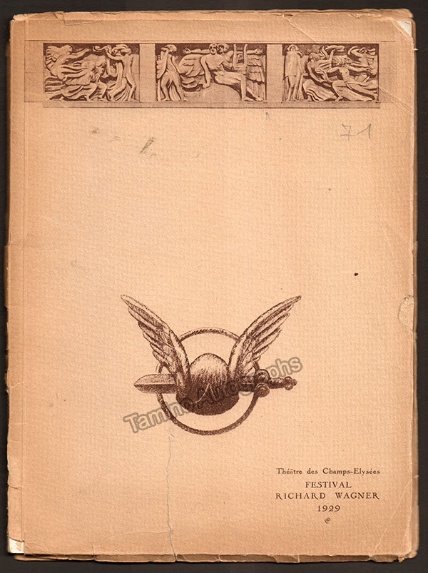 Program for the 1929 edition of the Wagner Festival at Theatre des Champs Elysees for the performance of the four operas composing Der Ring des Nibelungen with articles and many illustrations.