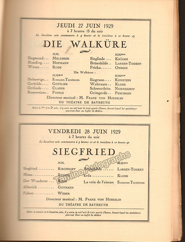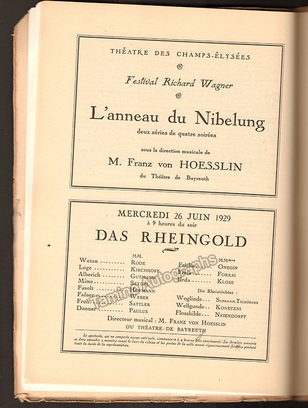 Theatre Des Champs Elysees Wagner Festival 1929 Program