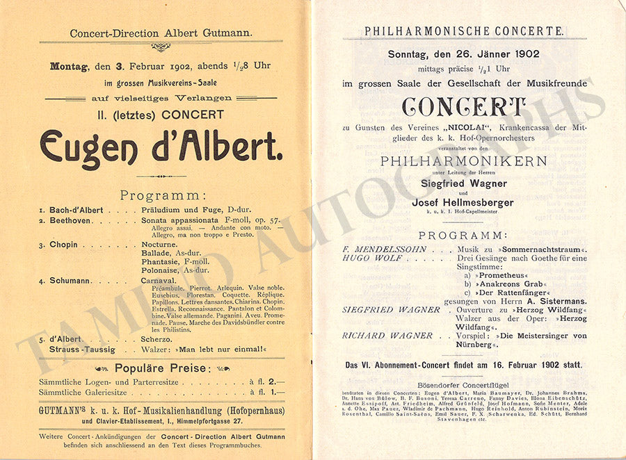 Wagner, Siegfried - Concert Program Vienna 1902 Wagner, Siegfried - Concert Program Vienna 1902 Wagner, Siegfried - Concert Program Vienna 1902