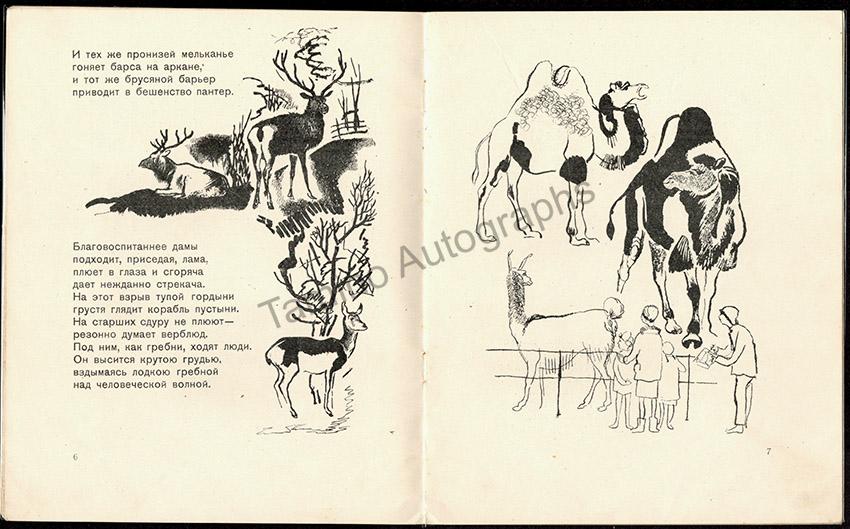 Very rare children´s book by the author of "Doctor Zhivago", long before he wrote his Nobel Prize winning novel. Pasternak was already known as one of Russia´s greatest poets, and wrote only 2 books for children, both after the birth of his first child. "Zverinets" is a long and little-known poem about the animals of the zoo. Although poet Marina Tsvetaeva called it "a brilliant bestiary", the book was not successful and Pasternak admitted that he really couldn´t write for children. Nikolai Nikolaevich Kupreyanov was an important Soviet graphic artist whose short career came to a sudden tragic end when he drowned in a river near Moscow in 1933. Very rare!