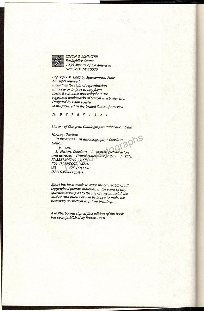Heston, Charlton - Signed Book "In the Arena" Heston, Charlton - Signed Book "In the Arena" Heston, Charlton - Signed Book "In the Arena"