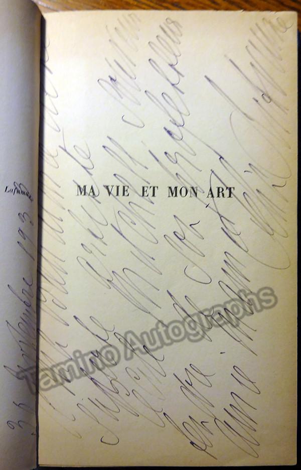 Autobiography book, entitled "Ma Vie et Mon Art", in French, published by Librairie Plon, 1933. Signed on first page by the star soprano, inscribed to one of her students, American singer Cecilia Mitchell. Size is 4.75 x 7.5 inches, complete with all 292 pages plus covers, minor water damage on front cover, binding and pages in excellent condition