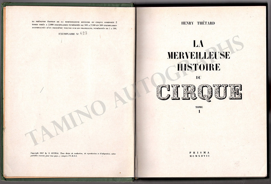 Thetard, Henry - Signed Book "La Merveilleuse Histoire du Cirque" Vol. I