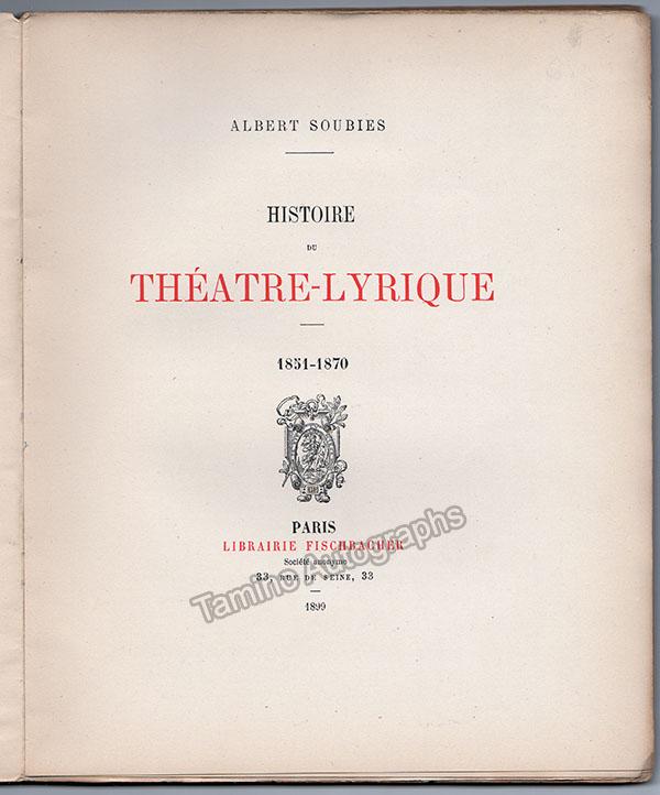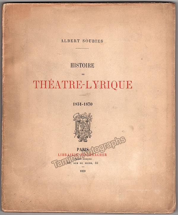 Soubies, Albert - Signed Book Histoire du Theatre-Lyrique - Tamino Soubies, Albert - Signed Book Histoire du Theatre-Lyrique - Tamino Soubies, Albert - Signed Book Histoire du Theatre-Lyrique - Tamino