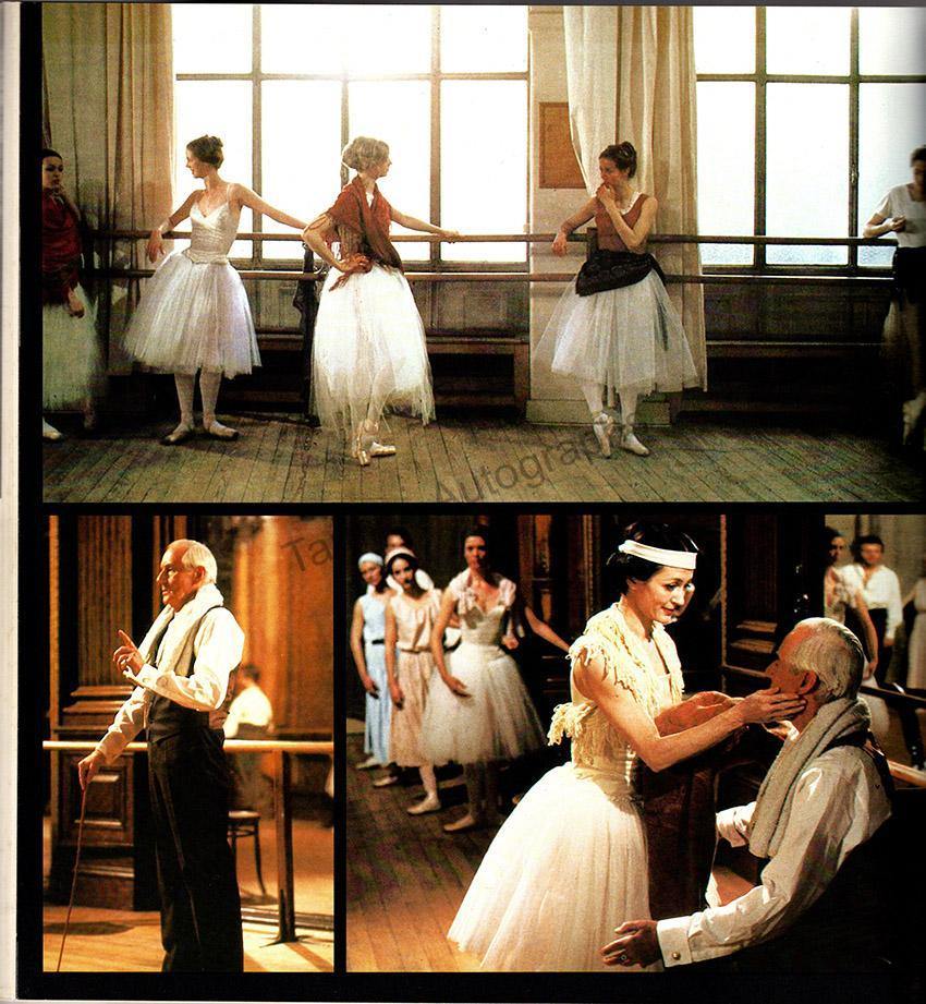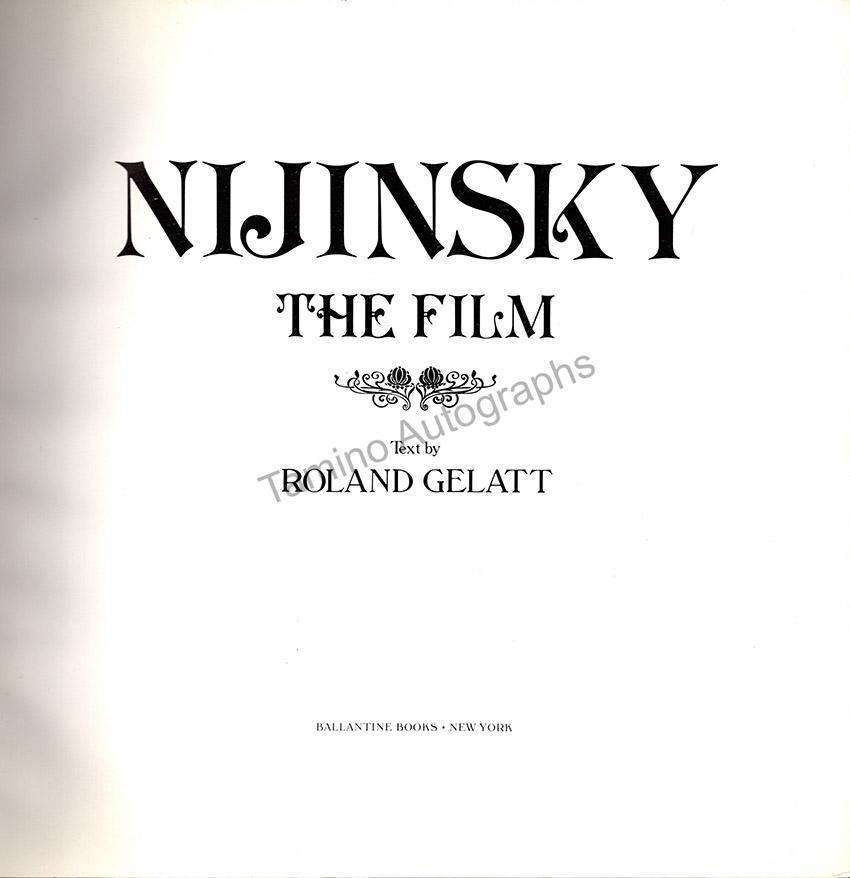 This is a book released by Ballantine Books, New York, in 1980, about the film, contains numerous black and white pictures of the real Nijinsky in performance and real life, as well as 55+ pages full of color shots from the movie. One of the color photos, a full-page picture, is signed by American ballet dancer and actor George de la Peña (Nijinsky) (b.1955), over the top left corner.