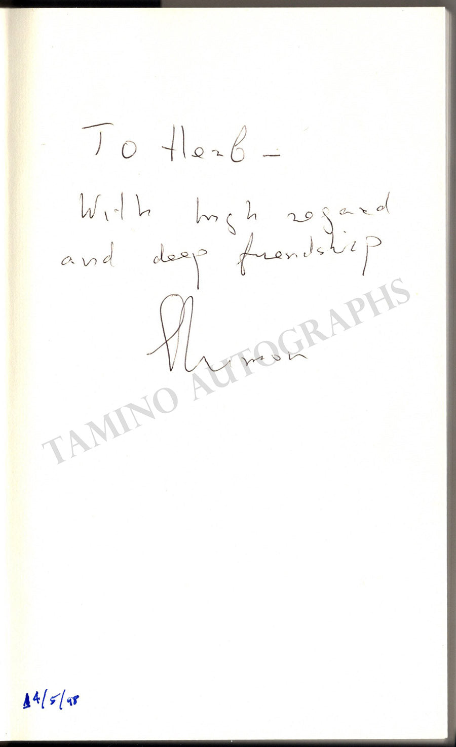 His book "For the Future of Israel", signed by him and inscribed to his friend Rabbi Herbert A. Friedman (1918-2008), a Reform Rabbi who also was president of UJA and was involved in many humanitarian causes.