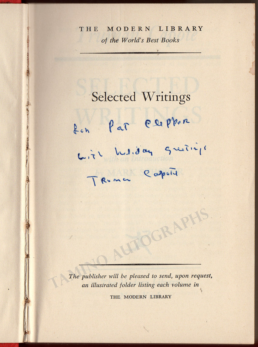 Capote, Truman - Signed Book "Selected Writings" Capote, Truman - Signed Book "Selected Writings"