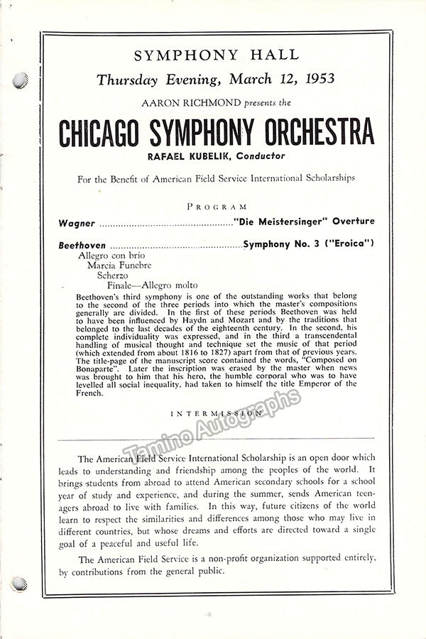 Kubelik, Rafael - Signed Program Chicago Symphony 1953 Kubelik, Rafael - Signed Program Chicago Symphony 1953 Kubelik, Rafael - Signed Program Chicago Symphony 1953