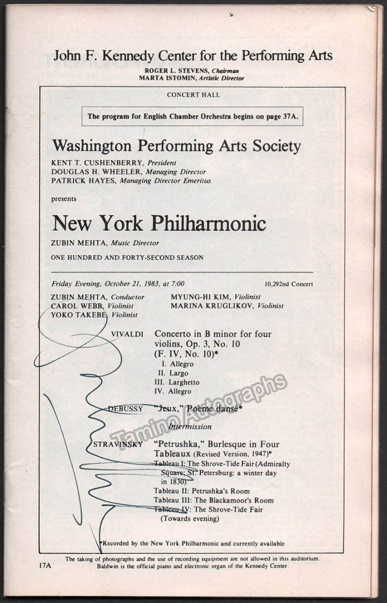 Mehta, Zubin - Signed Program JFK Center, Washington 1983