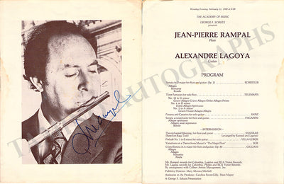 Original vintage, collectible signed programs, playbills and posters from famous instrumentalists (flute, horn, harp, etc) and music ensembles.
