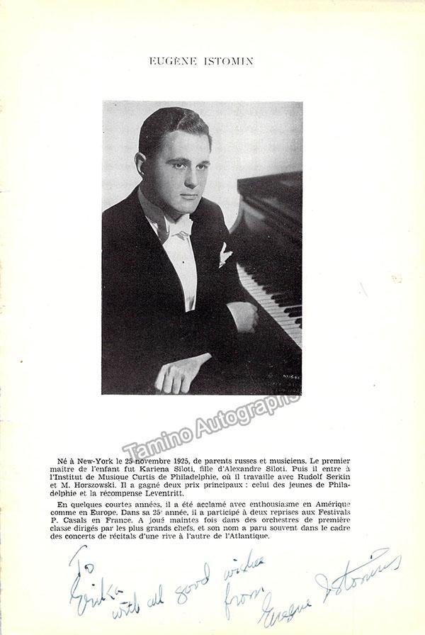 Photo page from a program (not full program), signed by the American pianist shown young.  Size is 6.25 x 9.3 inches, in very good condition.