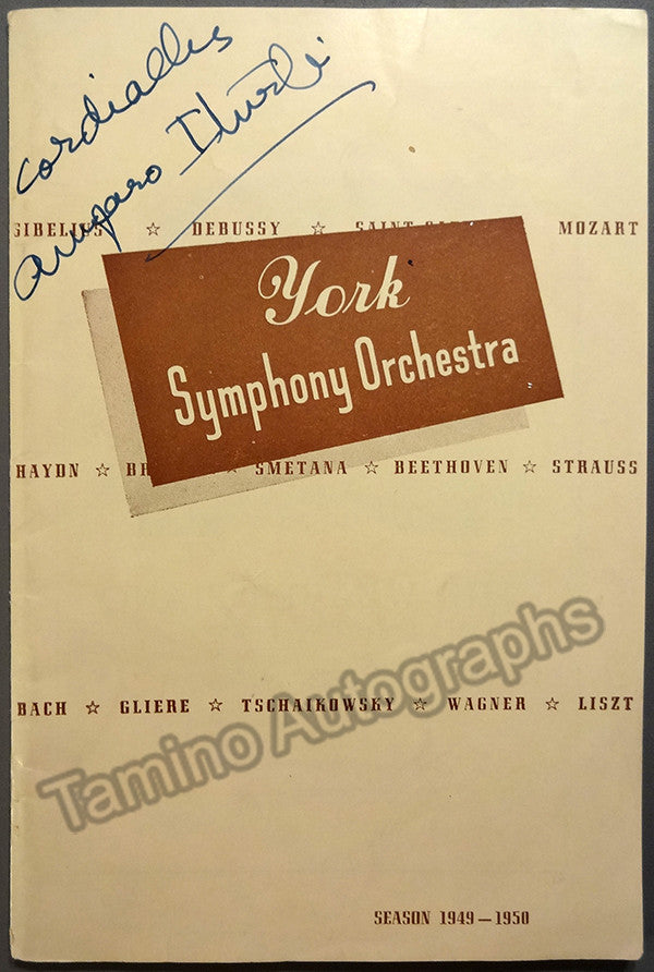 Program with the York Symphony Orchestra, 1950, Iturbi performs music by Liszt. Full program with all 26 pages and covers, signed on the cover by Jose Iturbi, 6 x 9 inches