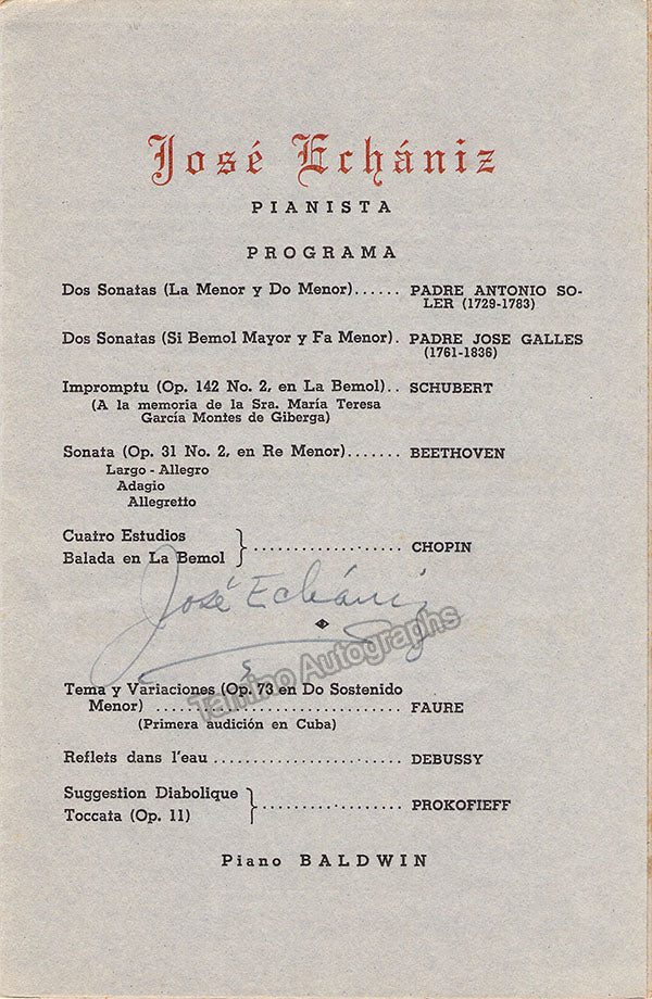 Echaniz, Jose - Signed Program Havana 1951 Echaniz, Jose - Signed Program Havana 1951