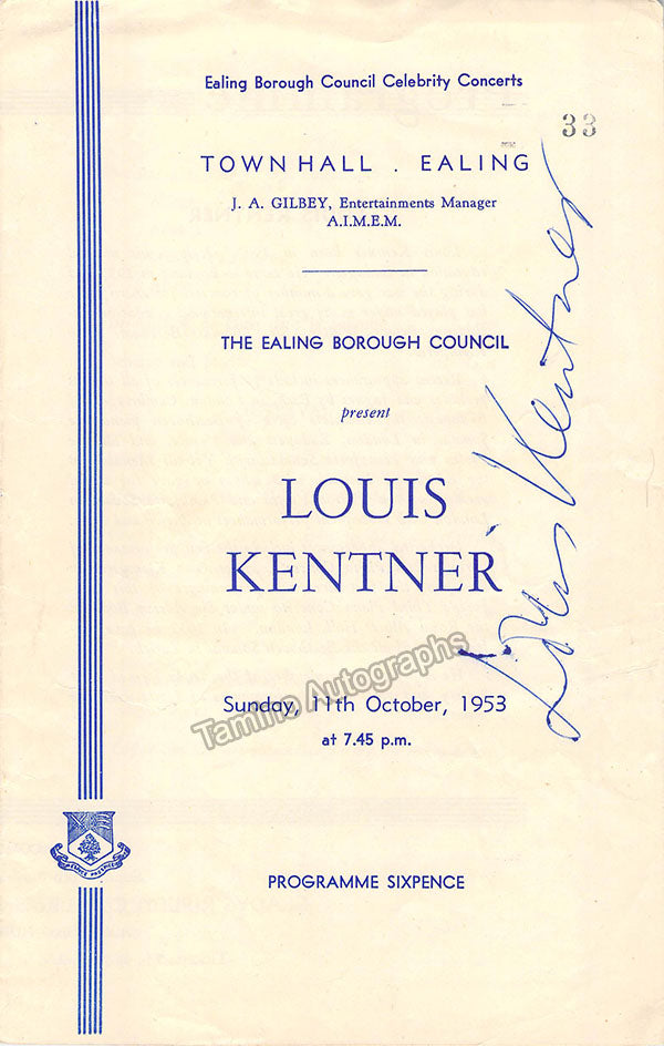 Kentner, Louis - Signed Program Ealing 1953