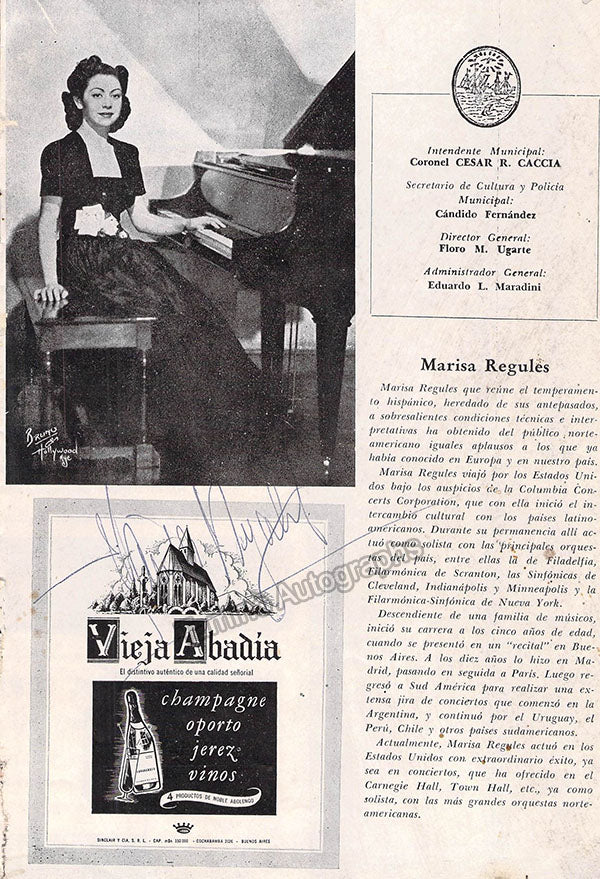 Regules, Marisa - Signed Program Buenos Aires 1946