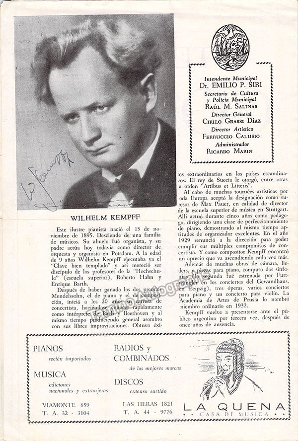 Kempff, Wilhelm - Signed Program Buenos Aires 1948