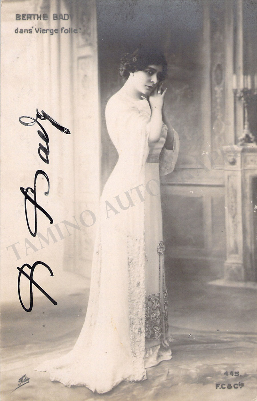 Black-and-white photo postcard signed by her. Size is 3.3 x 5.3 inches, in excellent condition.