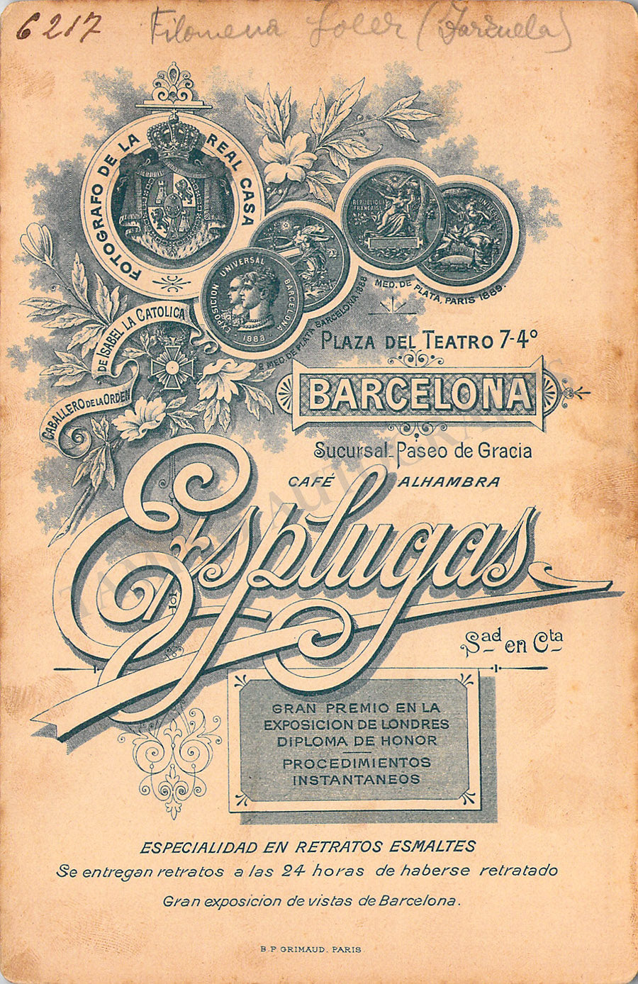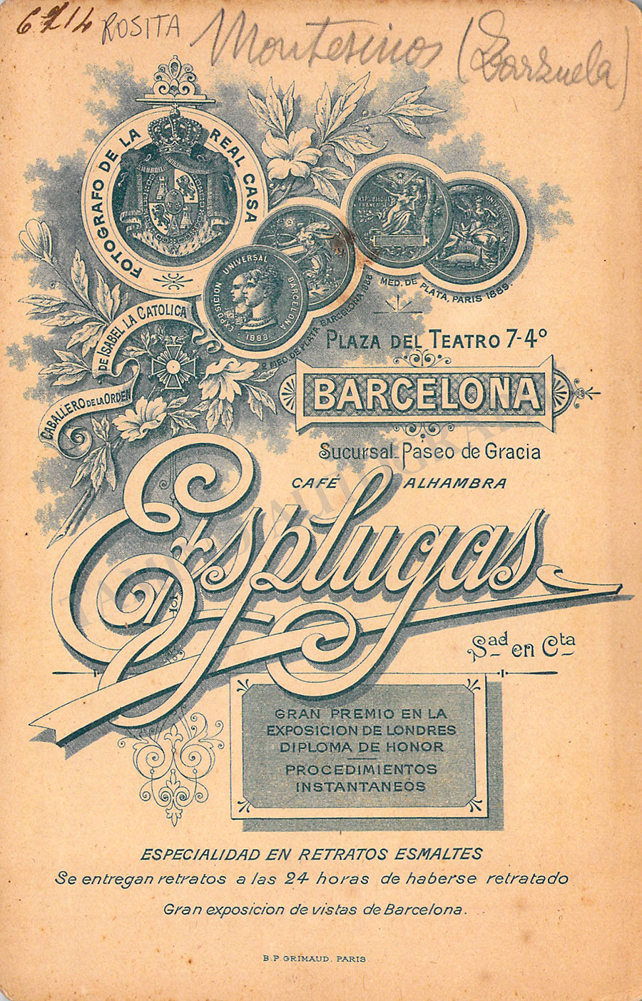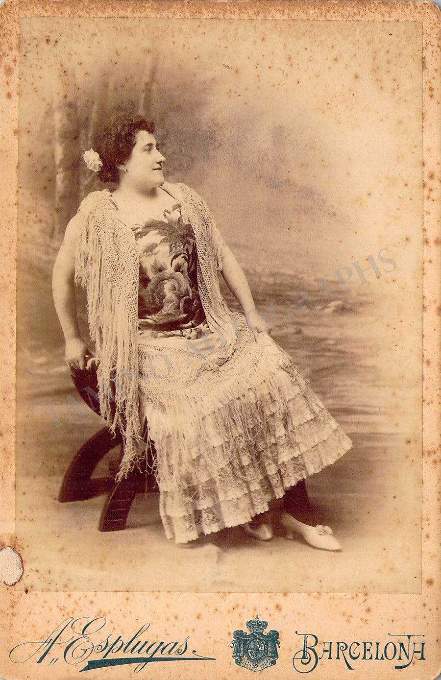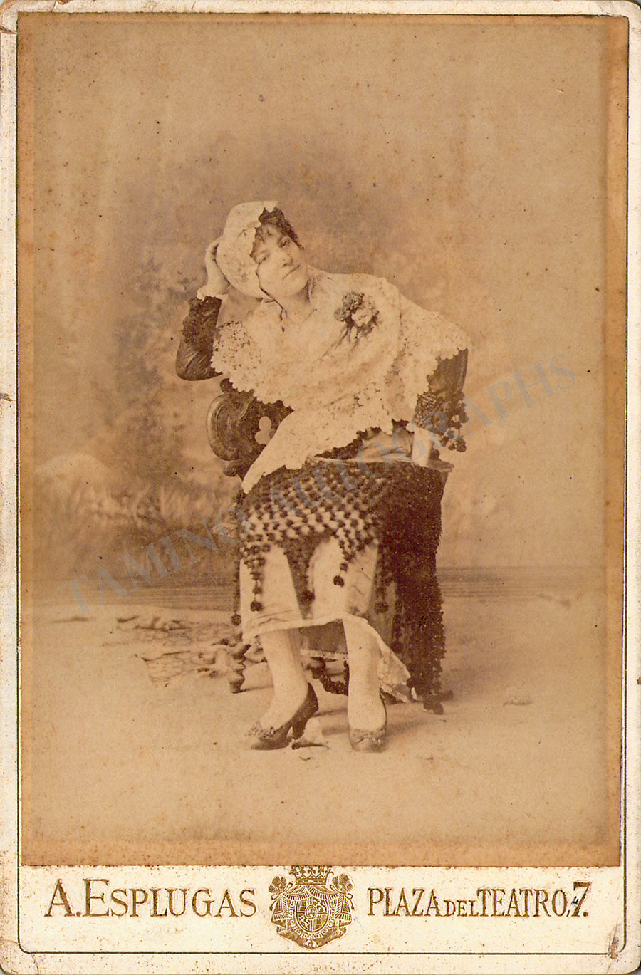 Original cabinet-style vintage (unsigned) photographs of different Zarzuela singers by photographer Antoni Esplugas (Barcelona). Each one's size is 4.1 x 6.5 inches approximately, in different conditions (check individual descriptions for details).