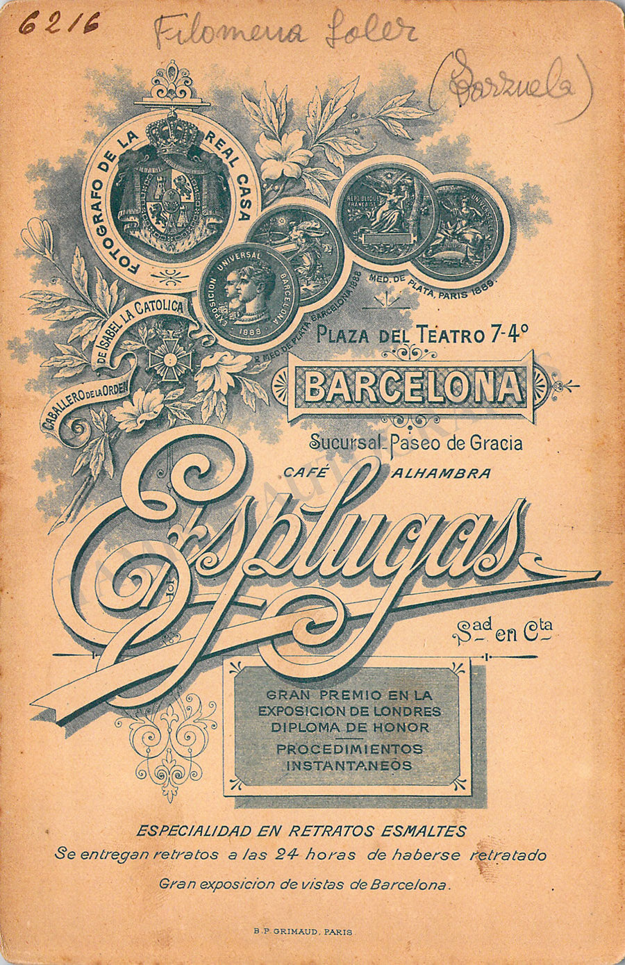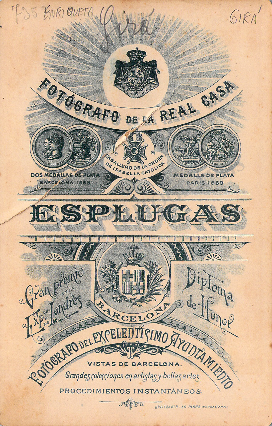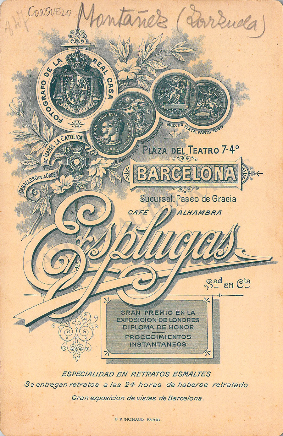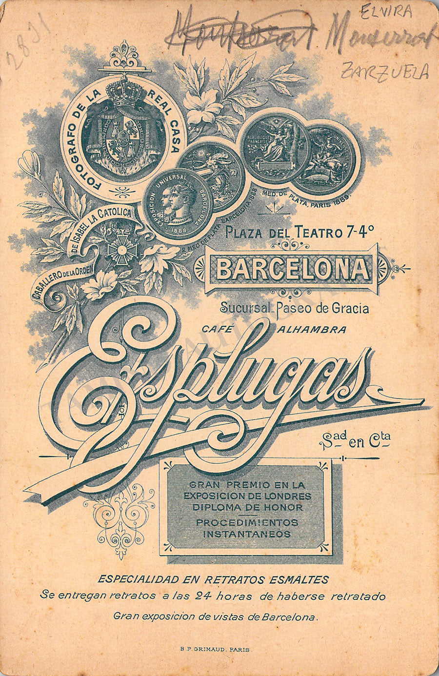 Original cabinet-style vintage (unsigned) photographs of different Zarzuela singers by photographer Antoni Esplugas (Barcelona). Each one's size is 4.1 x 6.5 inches approximately, in different conditions (check individual descriptions for details).