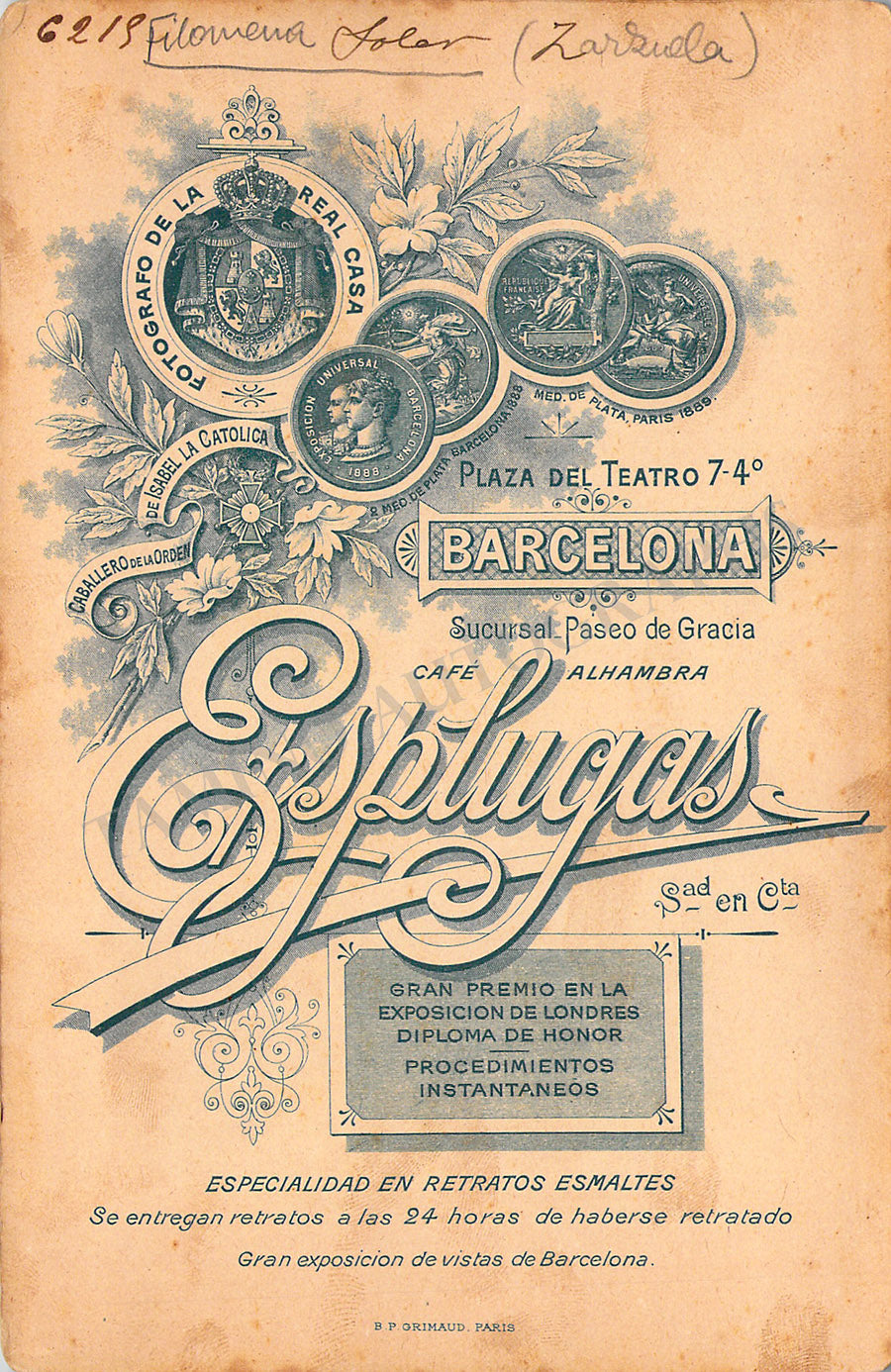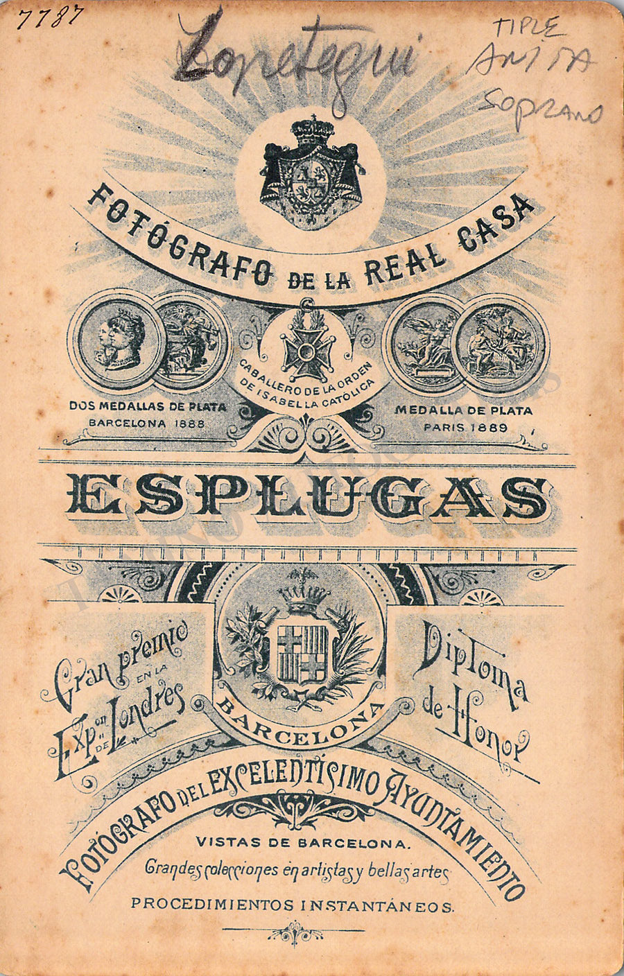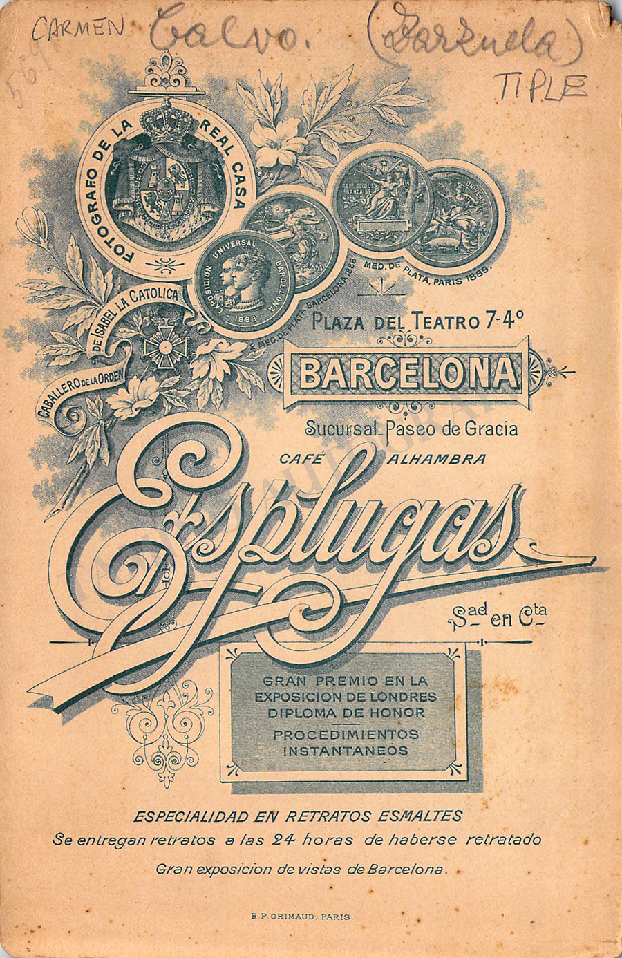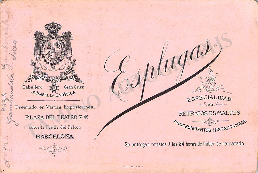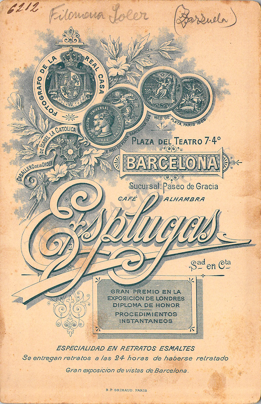 Original cabinet-style vintage (unsigned) photographs of different Zarzuela singers by photographer Antoni Esplugas (Barcelona). Each one's size is 4.1 x 6.5 inches approximately, in different conditions (check individual descriptions for details).