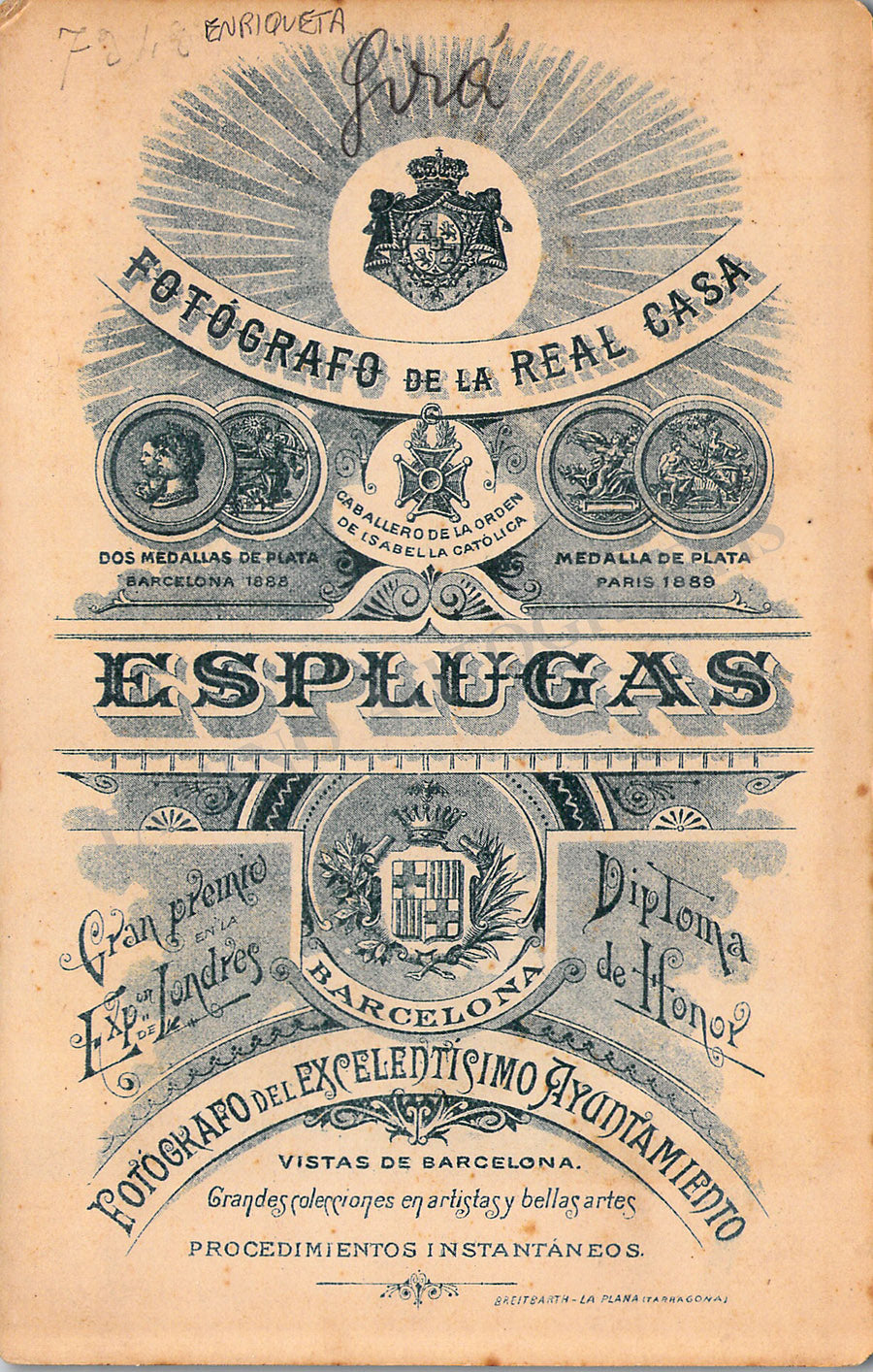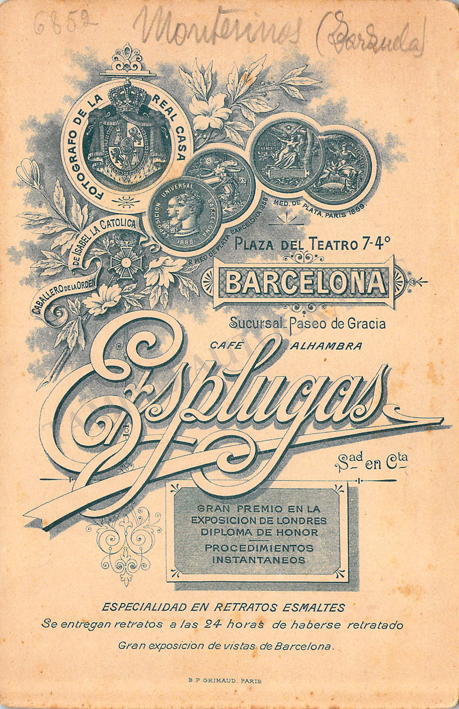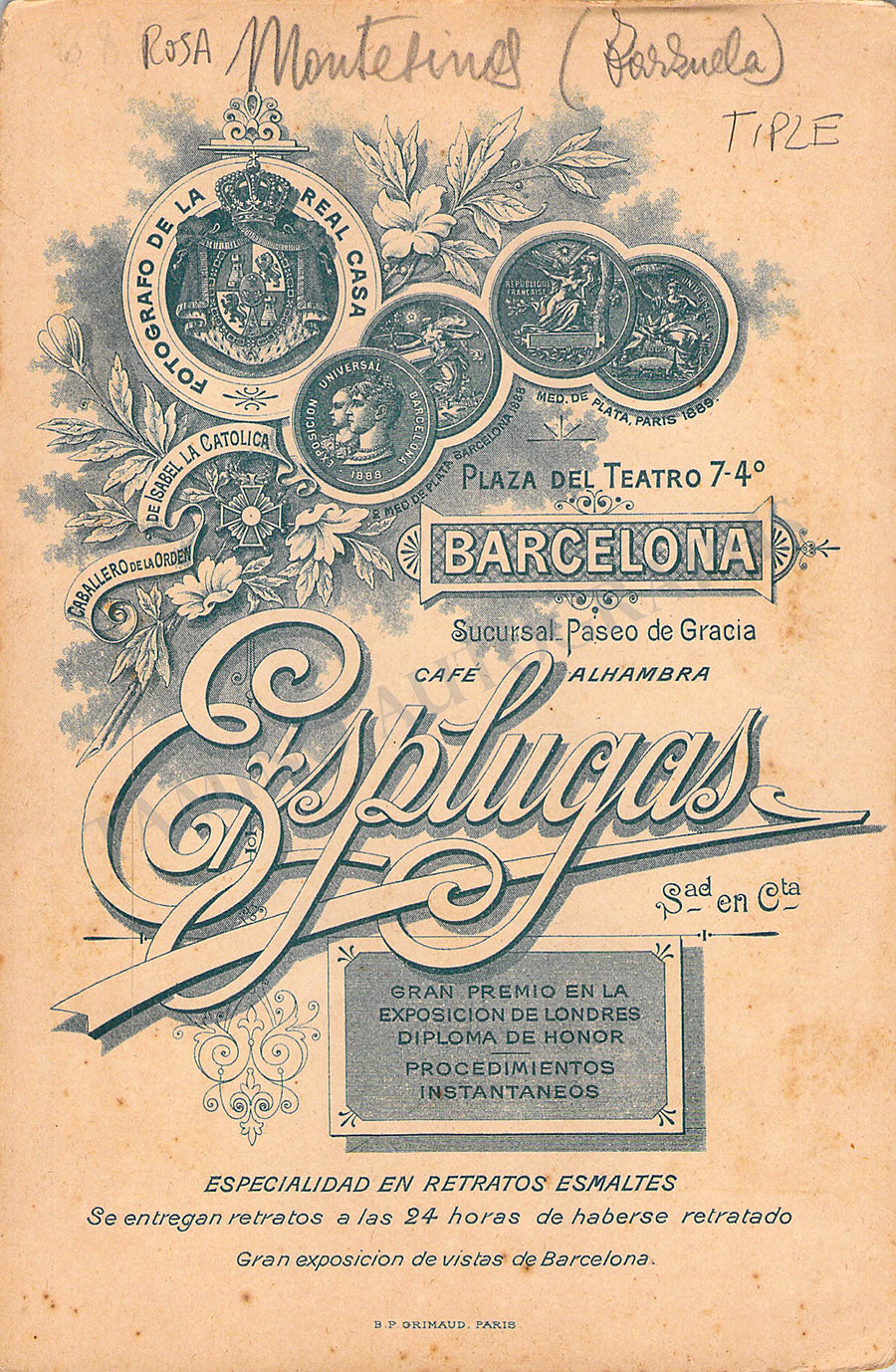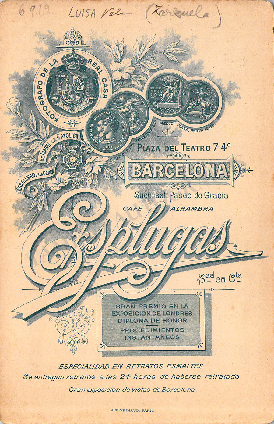 Original cabinet-style vintage (unsigned) photographs of different Zarzuela singers by photographer Antoni Esplugas (Barcelona). Each one's size is 4.1 x 6.5 inches approximately, in different conditions (check individual descriptions for details).