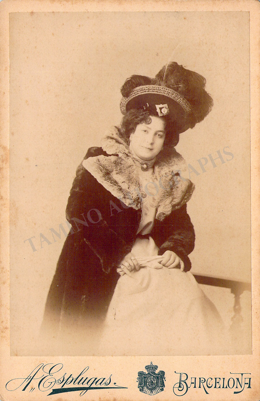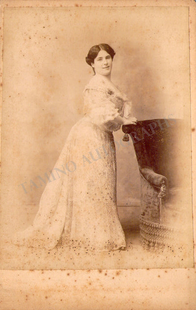 Vintage cabinet-style photograph of the singer shown probably in role; ink stamp on the front, verso in excellent condition.