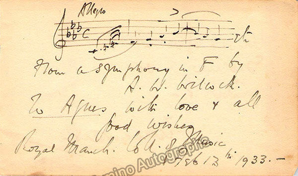 Wilcock, A. W. - Autograph Music Quote Signed 1933