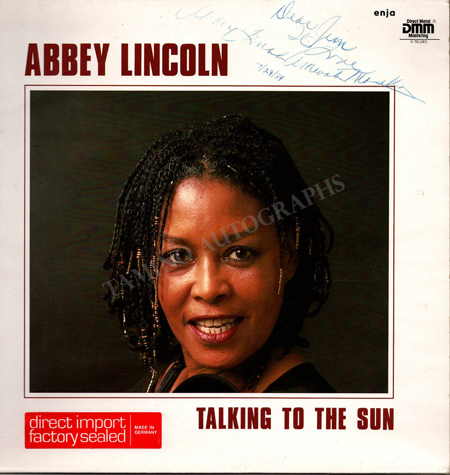 LP record sleeve of her album "Talking to the Sun" (1984) signed and inscribed by her with a short sentiment dated 1984. Size is 12.25 x 12.25 inches, no record included, in excellent condition.