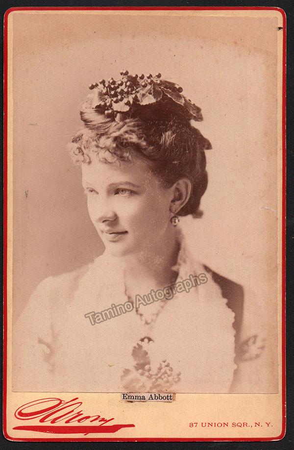 American soprano and impresario (1850-1891), unsigned cabinet photo, shown as herself. Photo by Sarony, New York. Size is 4.25 x 6.5 inches, verso is blank, in excellent condition.