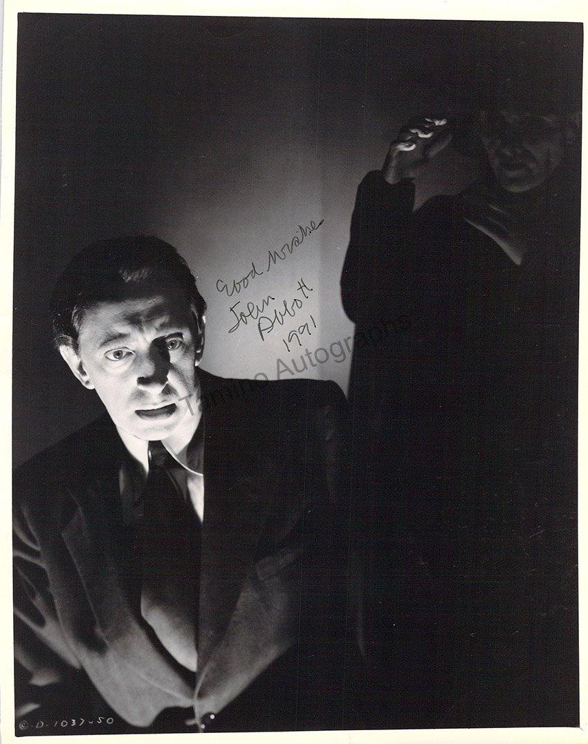 Nice photograph shown in the 1944 film "Cry of the Werewolf" signed by him with a short sentiment and dated in 1991; ink-stamped on verso by photographer Gordon Head, Columbia Pictures.  Size is 7.9 x 10.6 inches, minor creases, in very good condition.