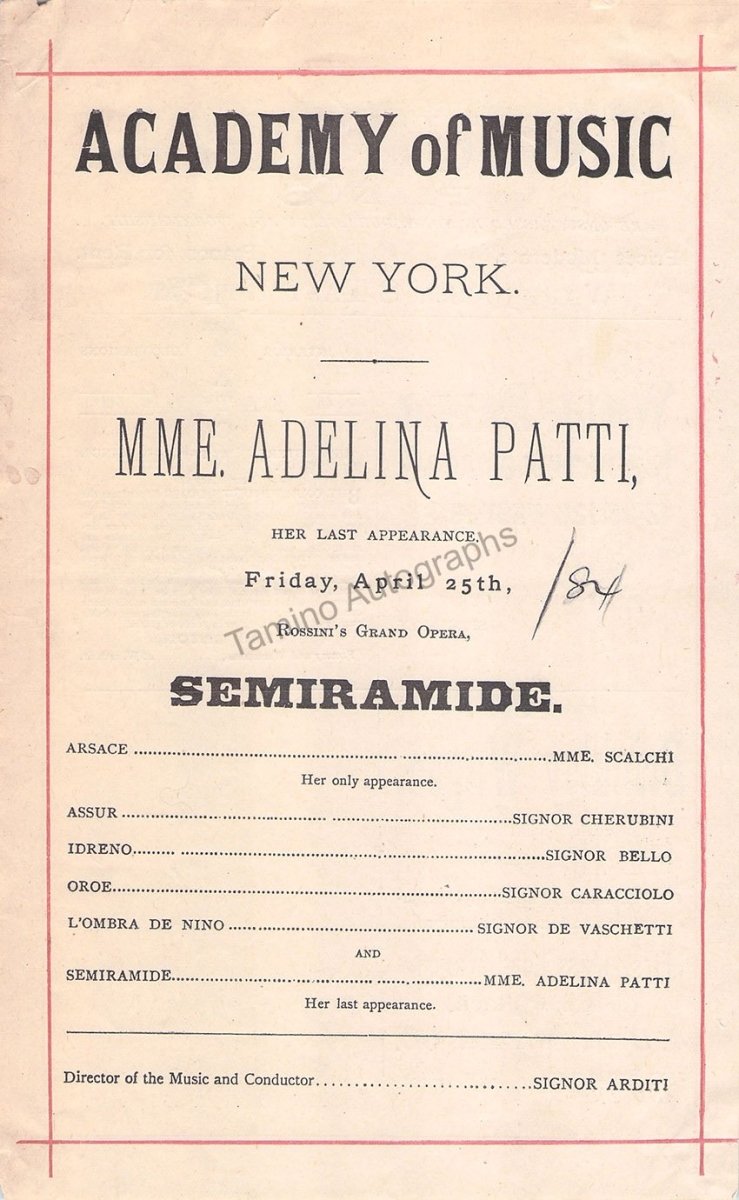Academy of Music - Adelina Patti and Etelka Gerster Playbills 1884 - Tamino Academy of Music - Adelina Patti and Etelka Gerster Playbills 1884 - Tamino