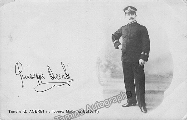 Italian tenor (1871-1934), signed photo postcard, shown as Pinkerton in Puccini's Madama Butterfly. Size is 5.5 x 3.5 inches, some wear on edges but otherwise in good condition.