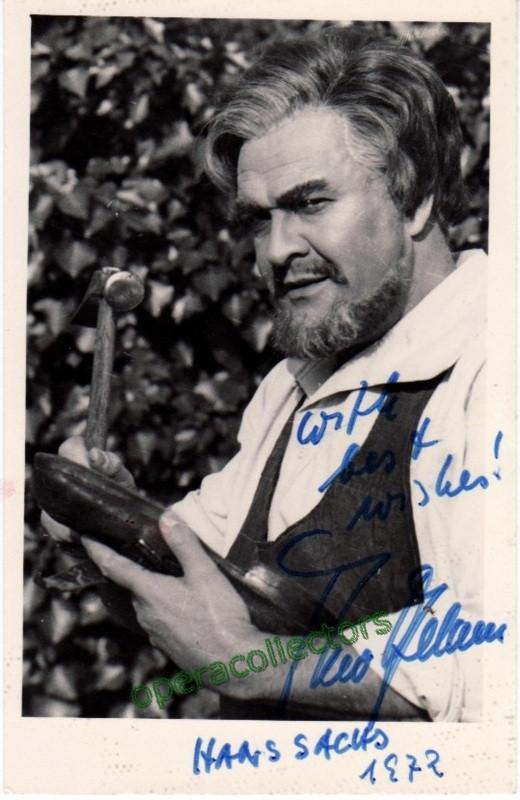 German bass-baritone (b. 1926), signed postcard, 3.5 x 5.5 inches, shown as Hans Sachs in "Die Meistersinger von Nurnberg", opera by Wagner, his Met Opera debut role.