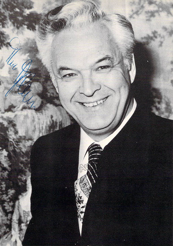 Fine black-and-white photo postcard signed by him, shown as himself. Size is 4 x 5.75 inches, in excellent condition.