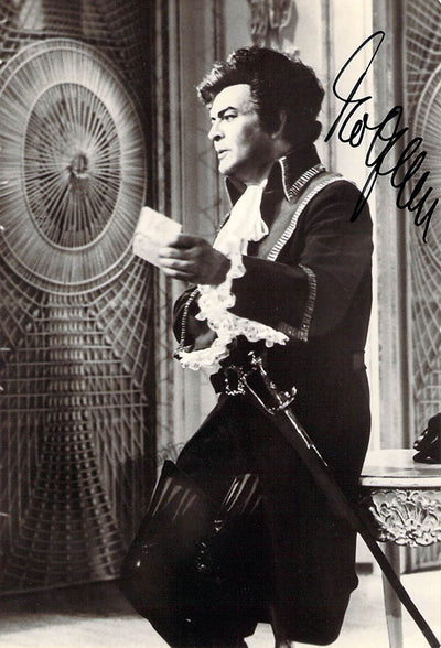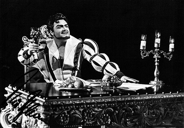 Fine black-and-white photo postcard signed by him, shown as Don Giovanni in Mozart's opera. Size is 5.75 x 4 inches, in excellent condition.