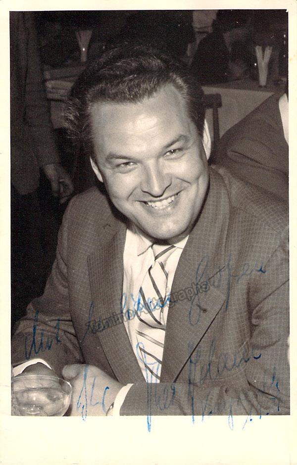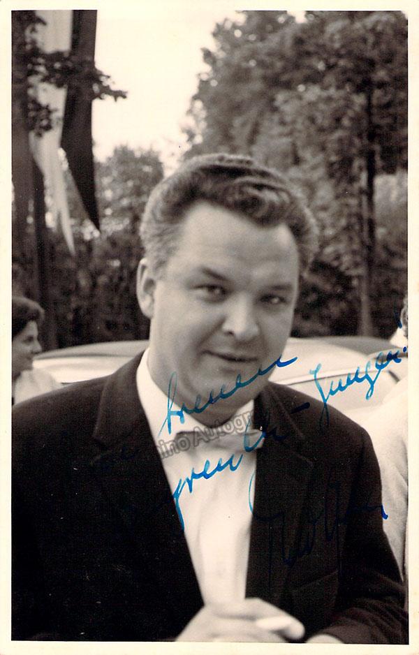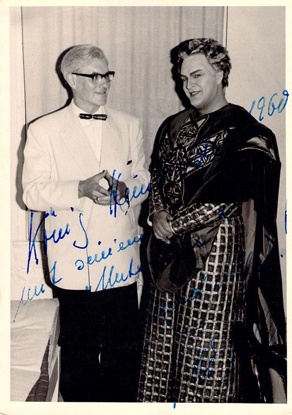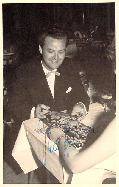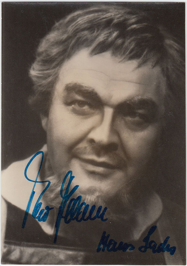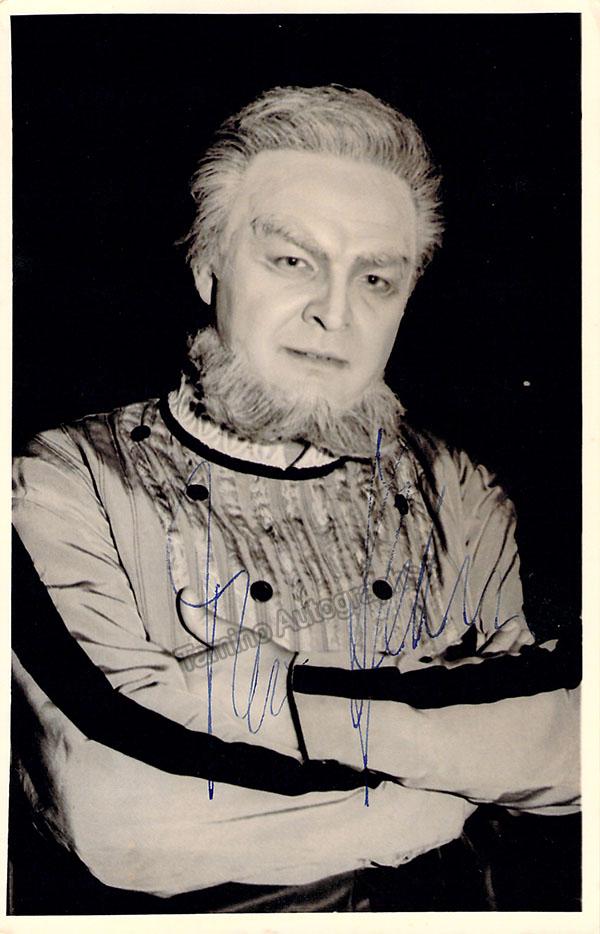 Signed photo postcard, shown as Wotan in Wagner's Ring des Nibelungen at the 1966 Bayreuth Festival. Photo by Siegfried Lauterwasser, Bayreuth. Size is 4 x 5.75 inches in excellent condition.