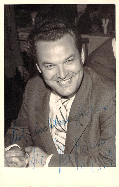 Signed photograph, shown as Figaro in Mozart's Nozze di Figaro. Size is 3.5 x 5.5 inches, in excellent condition.