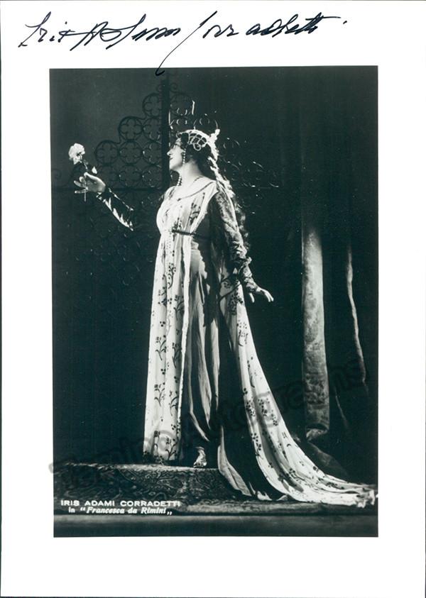 Italian soprano (1903-1998), signed photo, shown in the title role in Francesca da Rimini. Size is 5 x 7 inches, in excellent condition.