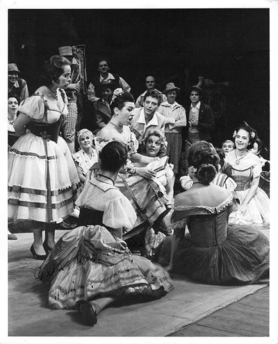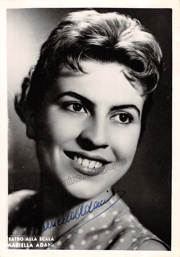 Fine black-and-white promo photograph signed and inscribed by her with a short sentiment, shown as Fiordiligi in Mozart's opera Cosí fan tutte for a production at Teatro La Scala, season 1964-1965. Size is 4.1 x 5.75 inches, in excellent condition.