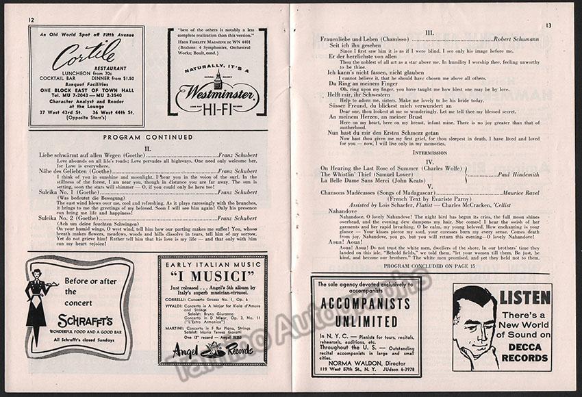 Addison, Adele - Lot of 3 Signed Programs 1957-1960