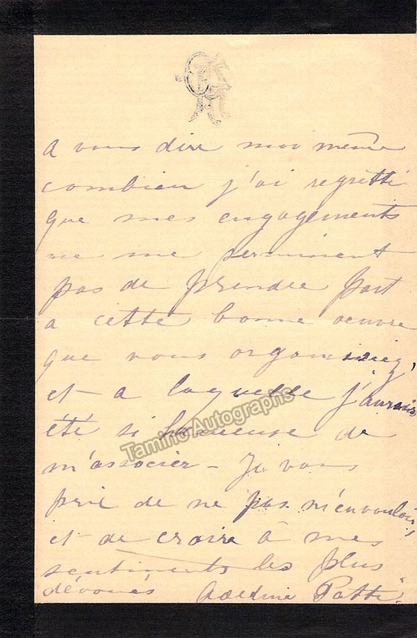 Patti, Adelina - Autograph Letter Signed - Tamino Patti, Adelina - Autograph Letter Signed - Tamino