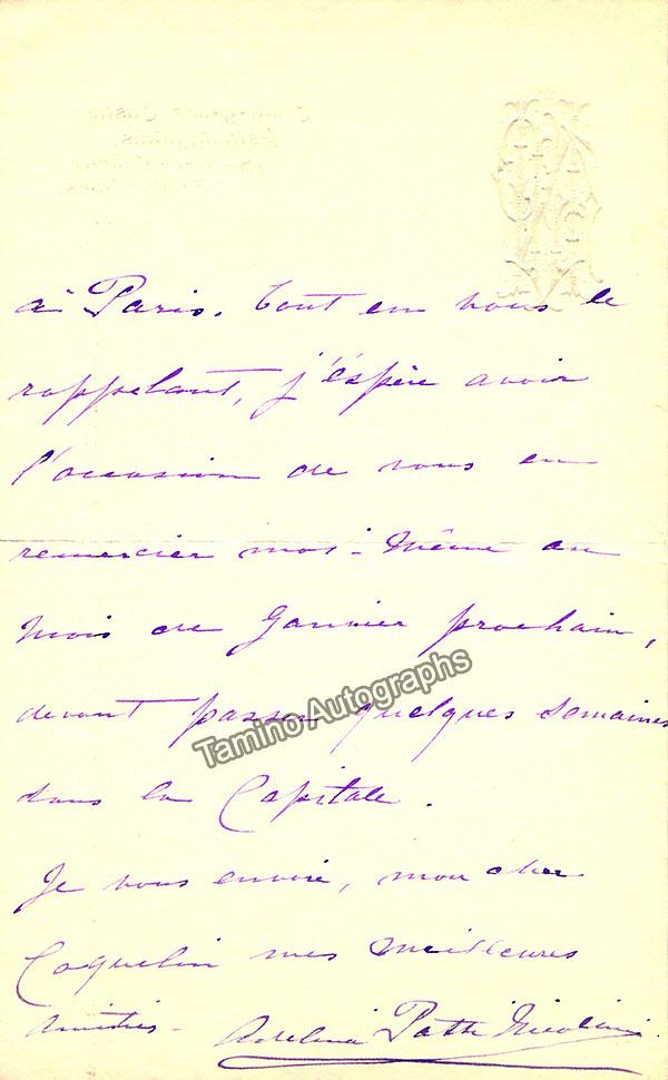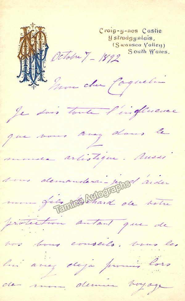 Patti, Adelina - Autograph Letter Signed 1892 - Tamino Patti, Adelina - Autograph Letter Signed 1892 - Tamino