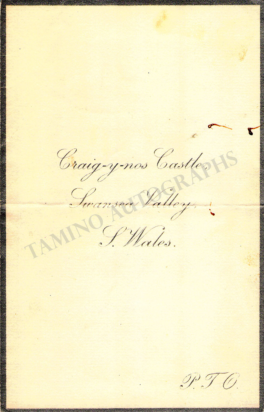 Her wedding announcement to the Italian tenor Ernesto Nicolini celebrated on June 10, 1886. Size is 4.5 x 7 inches, minor stains, in very good condition.
