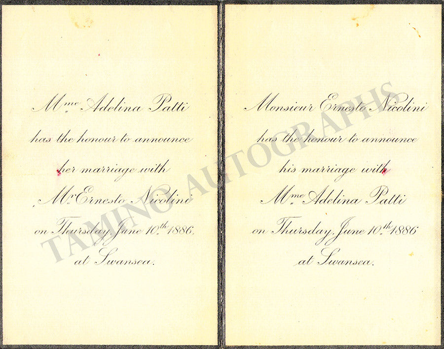 Patti, Adelina - Wedding Announcement 1886 Patti, Adelina - Wedding Announcement 1886